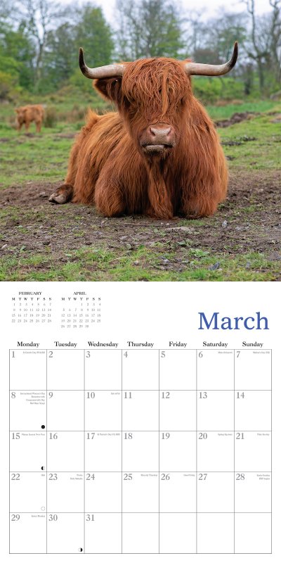2027 Calendar Highland Cows