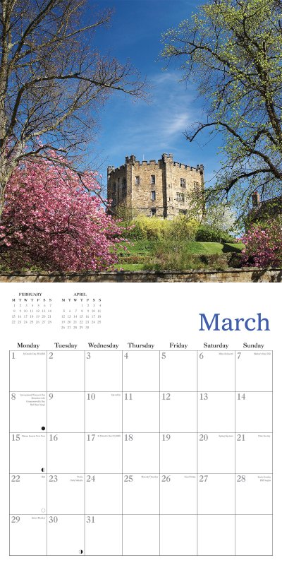 The selection of stunning images of England included are: Brougham Castle, Cumbria; Wentworth Castle, Yorkshire; Durham Castle, County Durham; St Michael’s Mount, Cornwall; Muncaster Castle, Cumbria; Stokesay Castle, Shropshire; Highclere Castle, Hampshire; Windsor Castle, River Thames, Berkshire; Dover Castle, Kent; Lindisfarne Castle, Northumberland; Scotney Castle, Kent; Cholmondeley Castle, Cheshire. Our 2027 range comes in plastic-free packaging. |
