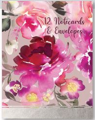 Folding wallet contains 12 notecards across 4 designs, blank inside and accompanied by a white envelope.