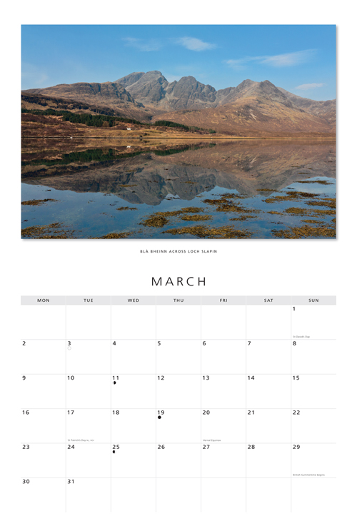 From renowned Scottish photographer Colin Baxter, our range of calendars are fantastic additions to any home or office. This is a 24 page engagement style wall calendar, opening to double size with a full page image on the top and a date box grid below for note taking. The calendar's dimensions are 22.8cm x 30.5cm (45.6cm x 30.5cm when opened). Our 2026 range come in plastic-free packaging. Colin's selection of stunning images of the Isle of Skye are: the Cuillin Hills from the south; Quiraing, Trotternish; Bla Bheinn across Loch Slapin; Duirinish beyond Loch Bracadale; Cuillin Hills beyond the River Sligachan; PS Waverley and the Skye Bridge; the Old Man of Storr, Trotternish; Glenbrittle and Loch Brittle from the Cuillin; Armadale Bay, Sleat; the Cuillin beyond Loch Leathan and Loch Fada; the Fairy Pools, Trotternish; the Cuillin and Loch Scavaig. |