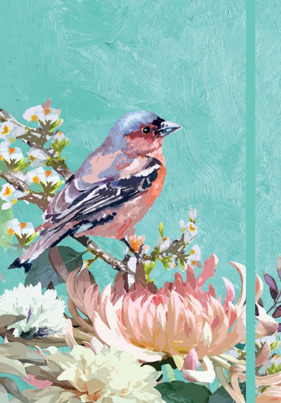 Flexi-bound notebook with lined pages, colour printed on side edge and elastic closure.